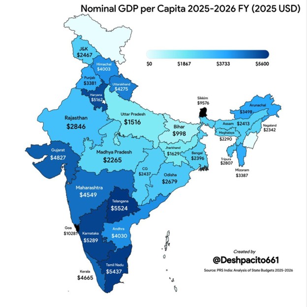 An Analysis of the Nominal GDP Per Capita of Indian States, 2025-26