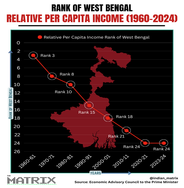 West Bengal, therefore, needs to change the leadership mid-set towards governance, cooperation with the Centre and other states, and overall economic management competence before it can improve its position and begin to positively contribute towards the Viksit Bharat goals.