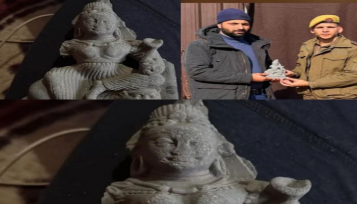 The earlier idol depicted Goddess Durga seated on a throne with four attendants. According to official records, the sculpture was made of black stone and measured about 6 inches by 8 inches in size. After examination, the idol was handed over to the Jammu and Kashmir Department of Archives, where it is currently preserved.