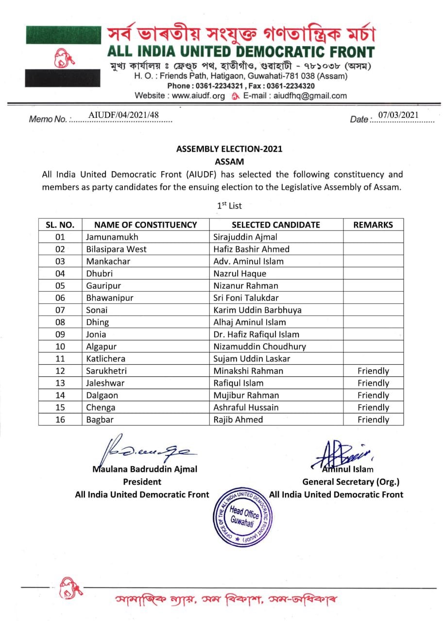 The prestigious Gauhati (East) seat has been retained by State Minister Siddhartha Bhattacharya, while Jayanta Malla Baruah is the BJP’s candidate in Nalbari which is one of the strongest bastions of the RSS in Lower Assam. The BJP is finally contesting on 92 seats, while its alliance partners will field their candidates from the remaining seats in the 126-member Assembly. The third and the final list of candidates of the AGP comprises of candidates for 13 constituencies.
