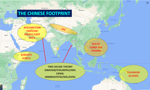 In the West Pacific, USA, Japan and Australia need to establish a triangle of denial so that China does not further into expand into the South China Sea or invade Taiwan in a surprise move or develop a significant naval presence in the Solomon Islands. It also needs to be recognised that Myanmar is central to the Indo-Pacific architecture. It affords a viable alternative to the Malacca dilemma if the CMEC is progressed and Kyaukphyu is developed as a Chinese naval base. Chinese ability to operationalise its two Ocean Theory must be thwarted at all costs. Simultaneously, its influence in Pakistan and Iran needs monitoring.