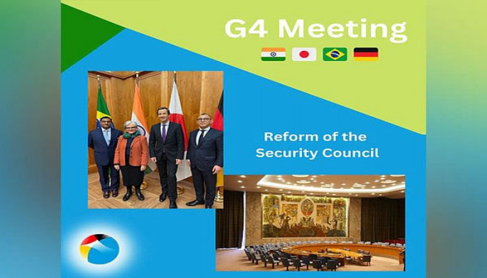 Germany, one of the members of Group of Four on Friday reiterated the need for reform in the United Nations Security Council (UNSC). "Reform of the UN Security Council more urgent than ever. #G4 India, Japan, Brazil and Germany remain strongly committed. Sincere thanks to Amb. Motta of Brazil, JS Gupta of India and DG Ichikawa of Japan, for a very fruitful meeting with DG Sautter in Berlin today," tweeted Germany in the United Nations.