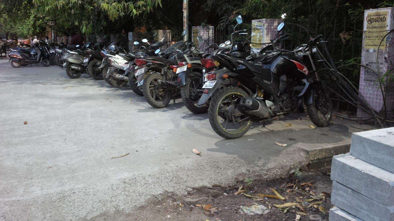Additionally, footpaths also become homes to shops, construction materials, and even double up as parking lots (pictures below). These photographs were taken in a road where a broad footpath was built barely few months ago.