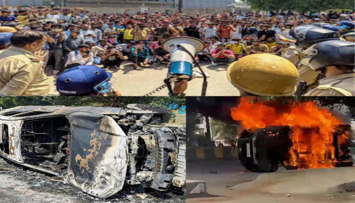 A protest by factory workers in Noida escalated into violence on Monday, highlighting growing frustration over low wages and long working hours. The unrest took place in the Hosiery Complex located in Phase 2 of Uttar Pradesh’s Noida. Workers, many of them women, have been protesting for the past four to five days, demanding better pay and improved working conditions. Their anger intensified after a female worker was allegedly hit with a lathi during police action, which triggered stone-pelting and arson, including setting vehicles on fire.