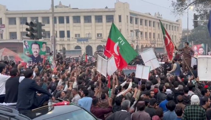 Pakistan Tehreek-e-Insaf (PTI) activists surrounded Imran Khan’s car and walked alongside his convoy as he travelled from Zaman Park to Lahore High Court.