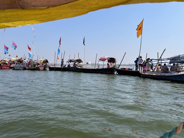 Enjoy the boat ride at the Sangam. Confluence of Ganga, Jamuna, and the mystical Sarasvati. Triveni or “three rivers” celebrates the three predominant aspects of the Devi – Durga, Lakshmi, and Sarasvati. It is a most revered spot for the Hindus. And here is where Kumbh is held, the largest congregation of humanity.