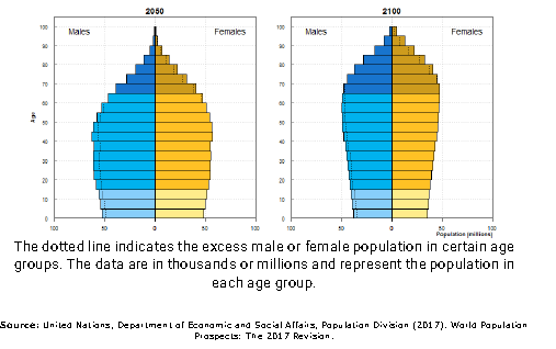 According to UN projections, the number of people over-60 years of age will increase from 205 million in 1950 to 2.1 billion by 2050.